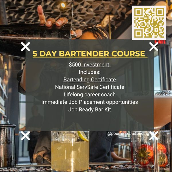 Join our intensive 2-day bartending class and get certified to kickstart your career! Master the essentials of bartending and serving in just two days, gaining hands-on experience and the skills to start earning fast. Enjoy a cool, engaging atmosphere with professional instruction that prepares you to mix, serve, and succeed. Don’t wait—sign up now and shake up your bartending career with your certification!
